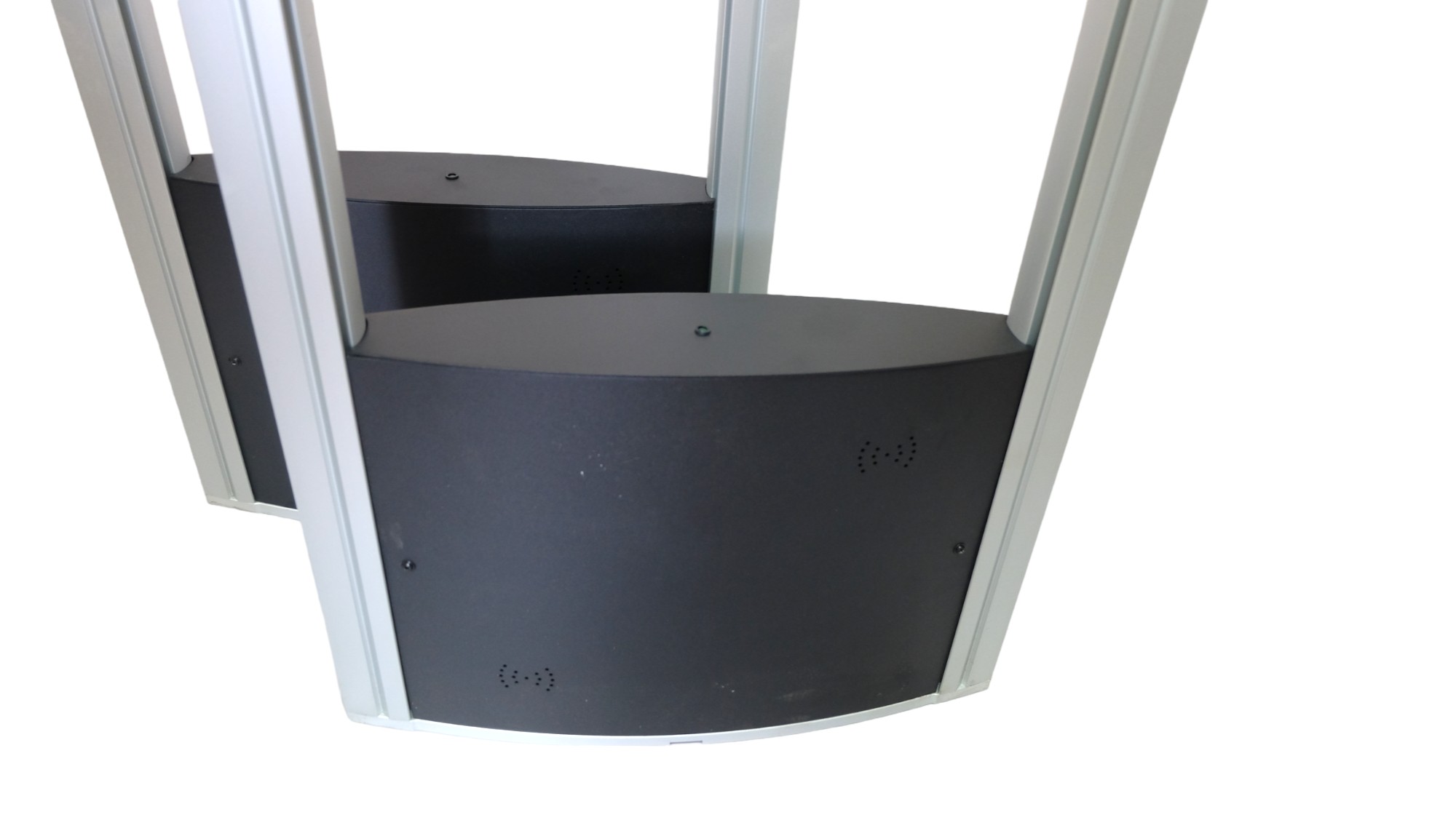 Зовнішній вигляд системи вигнуту форму, що підходить під будь-який дизайн магазину, завдяки своїй легкій конструкції, Антикражна система EVO DUAL виглядає привабливо.
